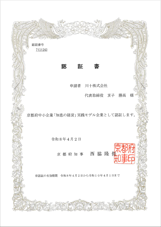 「知恵の経営報告書」が認証されました。
